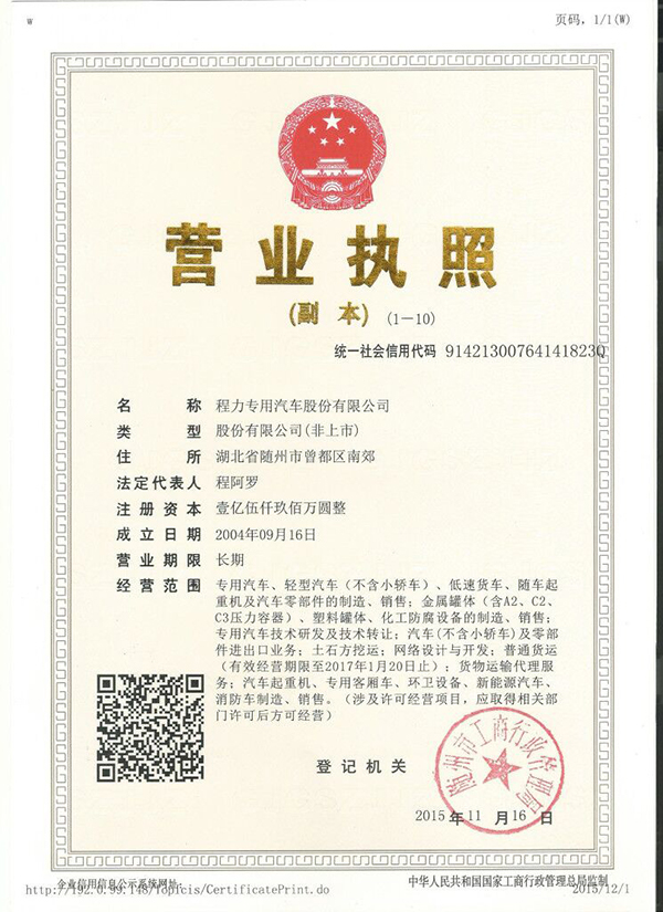 程力專用汽車股份有限公司銷售一分公司 銷售經理:胡鵬 QQ:2818307450 銷售熱線:18672231113 電子郵箱:2818307450@qq.com 企業地址:湖北隨州市程力汽車工業園